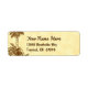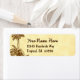 Une étiquette d'adresse de retour personnalisée avec des lettres de script et rétro et une gravure rustique de palmiers tropicaux en marron sur un arrière - plan faux parchemin.