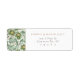 Cette étiquette d'adresse de retour personnalisée est l'incarnation du charme vintage et de l'élégance botanique. Il présente un étonnant motif floral avec des fleurs luxuriantes dans les tons sauge, olive et vert émeraude, entrelacé de délicats accents de noyer et de châtaignier, rappelant un jardin classique. Les noms du couple sont élégamment affichés dans une police serif sophistiquée, avec les détails de l'adresse dans une mise en page propre et lisible. Parfaits pour ajouter une touche personnalisée et élégante à votre correspondance mariage, ces étiquettes sont conçus pour créer une impression durable dès le premier regard.