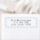 Étiquettes d'adresse de retour rayées en diagonale bleu clair.