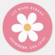 Étiquettes d'adresse de retour de premier anniversaire d'inspiration rétro avec marguerites de style 70 et polices et couleurs boho.