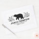 Une étiquette d'adresse de retour d'ours de wilderness rectangulaire. Elle présente un ours de forêt et un feuillage forestier.