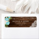 Étiquette d'adresse florale de guirlandes en bois rustique Aqua Mint. Ce design présente un fond en bois rustique avec des fleurs aqua et vert menthe accentuées de dentelle et de guirlandes scintillantes. Parfait pour un mariage champêtre en hiver ou au printemps.