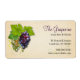 Une vigne avec quatre groupes de raisins de cuve alignent le long de l'aile gauche de cet étiquette. La vigne serpente derrière les raisins sur un fond de parchemin. Un grand étiquette pour une vinothèque, le magasin de vin, le vignoble ou un négociant en vins. L'utilisation pour des buts promotionnels, comme joints d'enveloppe, les étiquettes de adresse de retour ou pour fermer l'achat de client met en sac. Disponible avec les produits assortis.