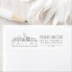 Un étiquette de adresse unique représentant la belle ville de Dallas, Texas. Ce étiquette présente une illustration stylisée de l'horizon unique de la ville avec son nom en dessous.