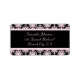 Un motif damassé orné en rose clair sur un arrière - plan noir avec du texte rose clair sur une bande noire et rose. Personnalisez avec votre propre texte pour créer un étiquette de adresse unique.
