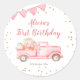Étiquette d'anniversaire du camion Citrouille rose
