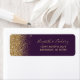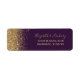 Le bord gauche de cette élégante étiquette d'adresse de retour mariage moderne présente une conception de parties scintillant en faux or. Le texte personnalisable combine écriture manuscrite couleur or pâle, cuivre et polices italiques sur un arrière - plan violet foncé.
