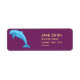 Bleu dauphin mignon dessin animé étiquettes de adresse personnalisés avec un design d'art d'un très mignon dessin de dauphin bleu girly contre un violet foncé personnalisable couleur arrière - plan. Le texte est entièrement personnalisable pour inclure vos propres détails personnels.