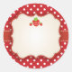 Cet étiquette doux de baie comporte l'arrière - plan rouge et blanc de pois. Un ruban rouge, et un étiquette vintage mignon superbe. Illustré avec trois fraises douces.