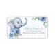 Ajoutez une touche de finition douce et élégante à vos invitations à la douche bébé avec cette élégante étiquette d'adresse de retour, avec un éléphant bébé aquarelle, des fleurs bleues douces et de la végétation de la jungle. Parfait pour la coordination avec votre safari ou votre douche de bébé à thème jungle, ce étiquette fait de vos enveloppes un sentiment spécial. Personnalisez avec votre nom et votre adresse pour un look poli et cohésif qui cravate magnifiquement votre thème entier.