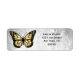 Personnalisez votre propre étiquette d'adresse de retour unique à l'aide d'un ensemble d'étiquettes d'adresse de retour pour papillon Or brillant. Le design étiquette présente un papillon brillant orné d'une vigne de feuillage contre un arrière - plan gris grunge et de l'espace à personnaliser avec votre nom et adresse. Autres articles de papeterie correspondants disponibles avec cette conception aussi.