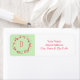 Cette étiquette de adresse présente une couronne de fleurs roses sur un arrière - plan vert pâle. Personnalisez avec votre monogramme et votre adresse.