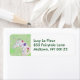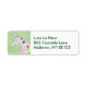 Étiquette d'adresse de retour avec une licorne blanche sur un arrière - plan vert.