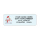 Montre un mignon bonhomme de neige souriant et joyeux aux bras de bâton, un chapeau de Père Noël rouge, un foulard rayé, un nez de carotte, des yeux et des boutons de charbon. Une façon joyeuse et adorable de décorer une étiquette d'adresse de retour, étiquette de adresse, ou étiquette d'expédition.