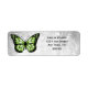 Personnalisez votre propre étiquette d'adresse de retour unique avec un ensemble d'étiquettes d'adresse de retour de papillon vert brillant. Le design étiquette présente un papillon brillant orné d'une vigne de feuillage contre un arrière - plan gris grunge et de l'espace à personnaliser avec votre nom et adresse. Autres articles de papeterie correspondants disponibles avec cette conception aussi.