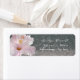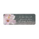 Un étiquette mariage avec un arrière - plan d'eau claire. Image d'hibiscus rose à gauche. Personnalisez le texte blanc à droite avec vos informations. Recherchez les invitations correspondantes et plus dans la catégorie "Boutique Mariage" de The Pink Schoolhouse.