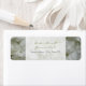 Étiquette de adresse avec un arrière - plan à fleurs d'hydrangées blanches. Personnalisez le texte vert et gris sur le centre. Recherchez l'invitation correspondante, enregistrez les cartes de date, les cartes RSVP et l'affranchissement dans la catégorie "Mariages" de la paperie de Jill.
