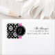Monogram G Faire-part de mariage Adresse de retour Label avec noir et blanc damassé et couleur accent rose. Customisez avec votre initiale monogramme, nom et adresse. Choisissez aussi la couleur arrière - plan et la couleur monogramme. Copyright Elke Clarke et les concédants.