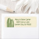 Peinture à l'aquarelle de Fencepost mexicaine sur un ensemble d'étiquettes d'adresse de retour. Nom latin pachycereus marginatus.