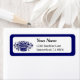 Étiquette d'adresse de retour personnalisée avec boiseries vintages d'un panier de marguerites et autres fleurs, sur un arrière - plan blanc et une bordure bleue.