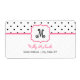 Un autocollant monogramme étiquette de adresse avec un arrière - plan de petits pois noirs sur blanc. Finition rose. Personnalisez avec votre premier cadre intérieur au centre supérieur. Personnalisez le texte rose et noir au-dessus d'une simple section en bas. Recherchez les invitations correspondantes chez Jill's Paperie.
