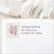 Un papillon aux couleurs lavande et rose, sur un étiquette de adresse