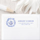 Ces étiquettes d'adresse ont un design monochrome avec un service à thé bleu et blanc entouré d'une couronne de fleurs sur le côté gauche. Vous pouvez personnaliser avec votre nom et adresse.