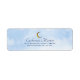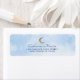 Le étiquette de retour d'adresse pour le baby shower comporte un arrière - plan d'aquarelle bleu et une parties scintillant d'or de la lune d'ombre.