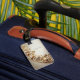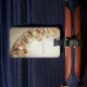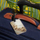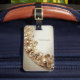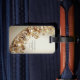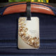 Belle étiquette de bagage avec motif doré orné, perles et fleurs