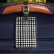 Étiquette de bagage à pois blancs avec lanière en cuir