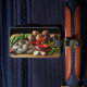 Faites ressortir vos bagages sur un carrousel d'aéroport aux motifs uniques d'étiquettes. Cette étiquette à bagages délicieux présente une photographie d'art des ingrédients pour une délicieuse sauté de légumes et de fruits de mer. Pois verts, champignons Crimini marron, poivrons rouges tranchés, échalotes hachées, gousses d'ail et crevettes crues sont empilés sur une planche à découper, prête pour le travail! Customisez l'envers avec vos renseignements personnels.