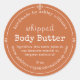 Autocollant rond d'étiquette de beurre corporel fait main Burnt Orange Script avec un riche fond orange brûlé et une typographie blanche manuscrite et serif. Le design présente clairement le nom de votre entreprise, le titre du produit, les ingrédients et le poids dans un format clair et facile à lire qui se sent à la fois fait main et professionnel. Idéal pour les pots de soins de peau biologiques, l'emballage de beurre corporel fouetté, les gammes de produits d'automne, les coffrets cadeaux et la marque des petites entreprises. Personnalisez facilement avec vos détails.