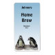 Ce étiquette de bouteille de bière glacée présente deux adorables pingouins africains debout sur une corniche rocheuse. Ce sont des oiseaux aquatiques sans vol dont les ailes sont devenues des palmes. Chacune a une bande noire et des taches noires sur la poitrine. Le motif de taches est unique pour chaque pingouin, tout comme les empreintes digitales humaines. Ils ont des glandes roses au-dessus des yeux et des pieds roses et noirs. Ils seront parfaits pour vos bières maison brassées comme lager, ale, stout, pilsner, bock, Oktoberfest, porter ou weissbier. Le texte descriptif se lit comme suit : Home Brew. Tout le texte peut être customisé avec vos informations spéciales.