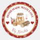 Ajoutez une touche festive et sincère à vos friandises de fêtes avec cette étiquette de pâtisserie maison de Noël. Caractérisée par des tons rouges hivernaux cosy, des accents de flocons de neige délicats et de charmants gâteaux aquarelles avec des boissons de fêtes, cette étiquette ronde est parfaite pour sceller les sachets de biscuits, les boîtes à gâteaux, les pains, les pots de confiture et les cadeaux de Noël faits maison. Idéal pour la pâtisserie de fêtes, l'emballage de cadeaux de Noël, les faveurs de fête et les friandises artisanales de petites entreprises. Personnalisez avec un nom pour une finition chaleureuse "fait avec amour".