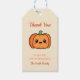 Une étiquette de cadeau de remerciement avec une citrouille mignonne dans le style Kawaii sur un fond orange clair. Vous pouvez l'utiliser pour une baby shower, ou simplement pour remercier vos amis pour leur aide et leurs cadeaux ! Avec les textes personnalisables, ce sera également parfait pour Halloween ou Thanksgiving !