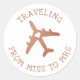 Autocollants d'étiquette de faveur de douche de mariage en or rose cuivre de miss à mrs pour une mariée de destination ou une douche sur le thème du voyage. L'avion en faux feuille avec cœur central est notre design exclusif et vous pouvez trouver plus d'articles coordonnés dans notre boutique de créateurs Zazzle. • • • • • • • Cliquez sur PERSONNALISER PLUS pour changer la couleur de fond de l'autocollant, choisir une nouvelle couleur de texte ou police, ou modifier le design pour créer un autocollant personnalisé pour votre célébration. • • • • • • •
