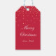 Étiquette de cadeau de Noël à pois confettis dorés et rouges. Personnalisez comme vous le souhaitez.
