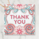 Étiquette de remerciement bohème avec des fleurs romantiques et des volutes.