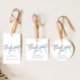 Étiquettes modernes de remerciement pour les faveurs de votre soirée de shower de mariage avec un nœud bleu. Parfait pour une soirée de filles sur le thème "Elle va se marier".