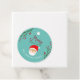 Étiquette de cadeau de Noël personnalisée moderne, élégante et simple avec des couleurs pastel bleu et rouge, avec un joli Père Noël, des branches vertes et des baies de houx.