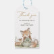 Ajoutez une touche finale douce à vos faveurs et cadeaux de baby shower avec cette étiquette au thème forestier représentant une renarde à l'aquarelle douce, un petit cerf et un hibou. La disposition délicate et le texte moderne s'accordent parfaitement avec vos invitations et papeterie de shower assorties. Personnalisez le nom pour un détail charmant que vos invités adoreront.