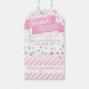 Étiquette de cadeau pour Baby Shower rose et argentée Sugar & Spice. Personnalisez comme vous le souhaitez.