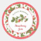 Ce magnifique étiquette de confiture de fraise a une atmosphère vintage et cosy qui fera vraiment ressortir vos produits en conserve. Le étiquette rond aurait l'air bien sur le couvercle ou sur l'avant du bocal. Le design comprend un bouquet de fraises aquarelles en haut et un endroit pour ajouter un nom. Le texte du étiquette dit "confiture de fraises maison" en rouge. L'arrière - plan est une frontière polkadot rouge et blanc.