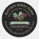 Ajoutez votre nom d'entreprise, votre adresse, votre poids net. Étiquette noir élégant avec texte or et illustration de canneberge rouge et verte.