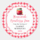 Cet autocollant amusant et fantaisiste présente un pot de confiture de canneberge sur un napperon en dentelle blanche et un fond à carreaux rouges. Il est parfait pour étiqueter vos produits faits maison. Le texte combine une écriture manuscrite et des polices serif pour un look élégant et moderne.