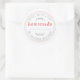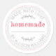 L'étiquette de cuisine verte faite maison rustique présente un fond blanc croquant avec des détails de cercles cousus et des accents botaniques verts doux, magnifiquement associés à une écriture «faite maison» rouge audacieuse. Parfait pour étiqueter les produits de boulangerie, les confitures, les conserves, les pots de conserve, les sachets de friandises et les cadeaux faits maison, cet autocollant rond ajoute une touche chaleureuse et personnelle à tout ce qui est fait avec amour. Les éléments verts frais apportent une sensation joyeuse et naturelle - idéale pour les boulangers maison, les fabricants de produits alimentaires de cottage et les cadeaux saisonniers.