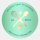 Un design élégant et stylé de couleur vert menthe et or sur le thème du chef pâtissier de cupcakes. Cette étiquette autocollante est idéale pour étiqueter les emballages de boulangerie, les faveurs de mariage ou de fête d'anniversaire, les cadeaux de desserts faits maison, et plus encore. Veuillez noter que les détails en feuille sont simulés.