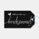 Étiquette de cadeau de proposition moderne noir et blanc pour demoiselles d'honneur. Posez la question à vos meilleures amies avec style grâce à cette élégante étiquette de proposition de demoiselle d'honneur. Caractérisée par un fond noir épuré, une police de caractères cursive blanche moderne et des détails en forme de cœur, c'est le moyen idéal de rendre votre proposition encore plus spéciale. Idéal pour attacher aux cadeaux de demoiselles d'honneur, aux boîtes de la demoiselle d'honneur, aux faveurs du cortège de mariage et aux cadeaux de douche de mariage. Un souvenir chic et intemporel que votre cortège de mariage adorera.