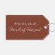 Demandez à votre cortège de demoiselles d'honneur avec style grâce à cette élégante étiquette de demande de témoin de mariage moderne ! Conçue avec une typographie minimaliste et une mise en page chic et contemporaine, cette étiquette est la touche finale parfaite pour vos cadeaux de proposition de cortège de mariage, boîte de demoiselle d'honneur ou faveurs de mariage.