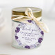 Cette étiquette comporte des fleurs à l'aquarelle violette claire et foncée, des feuilles et des éléments floraux argentés. La copie est entièrement modifiable. Vous pouvez également changer la police. Cette étiquette a des invitations, des enveloppes et des étiquettes assorties. Faites en sorte que tous vos articles de mariage soient coordonnés !
